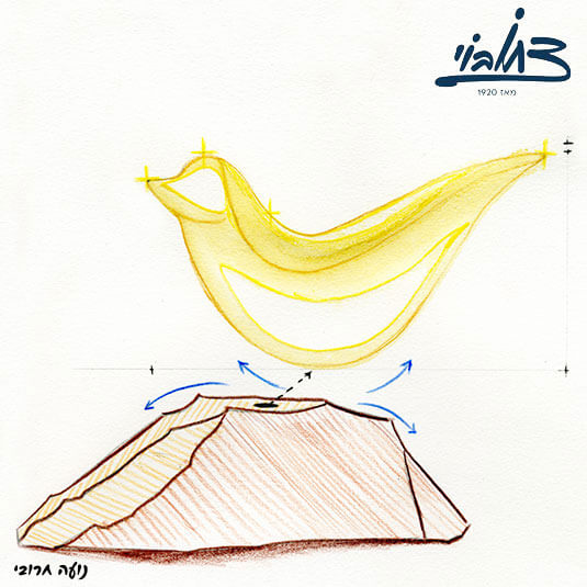 שילוב של מודרניות וקלאסה, ישן וחדש מתגלם במפגש הדורות המרתק בין יונה כסופה ומוזהבת היושבת על בסיס אבן ירושלמית.